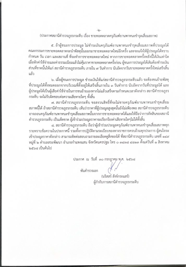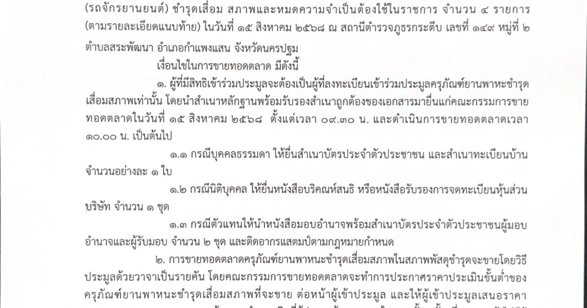 ขายทอดตลาดครุภัณฑ์ยานพาหนะชำรุดเสื่อมสภาพ 1 August 2568 by adm_kratip adm_kratip / ข่าวประกาศและคำสั่ง,ข่าวประชาสัมพันธ์,ข่าวประชาสัมพันธ์,ข่าวฝากประชาสัมพันธ์