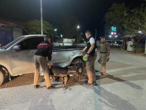 เมื่อวันที่ 18 พฤศจิกายน 2567 เวลาประมาณ 19.50 น. ว่าที่พ.ต.ท.สุรศักดิ์ ปิ่นทอง สว.(สอบสวน)สภ.กระตีบ ได้เดินทางไปตรวจที่เกิดเหตุ อุบัติเหตุรถยนต์กระบะเฉี่ยวชน