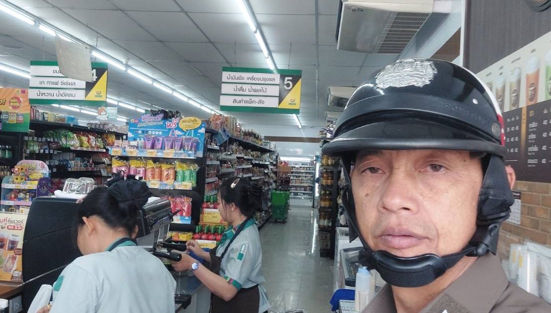 สายตรวจจราจรออก ว.4 ตรวจร้านสะดวกซื้อ ซีเจ เอ็กซ์เพรส ต.สระพัฒนา อ.กำแพงแสน จ.นครปฐม เหตุการณ์ทั่วไปปกติ