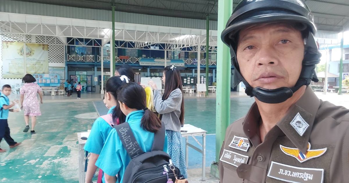 สายตรวจจราจร ปฎิบัติหน้าที่อำนวยความสะดวกการจราจร หน้าโรงเรียนบ้านหนองพงนก