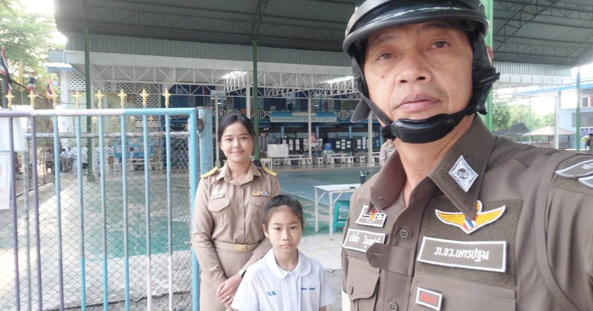 สายตรวจจราจร ปฎิบัติหน้าที่อำนวยความสะดวกการจราจร หน้าโรงเรียนบ้านหนองพงนก