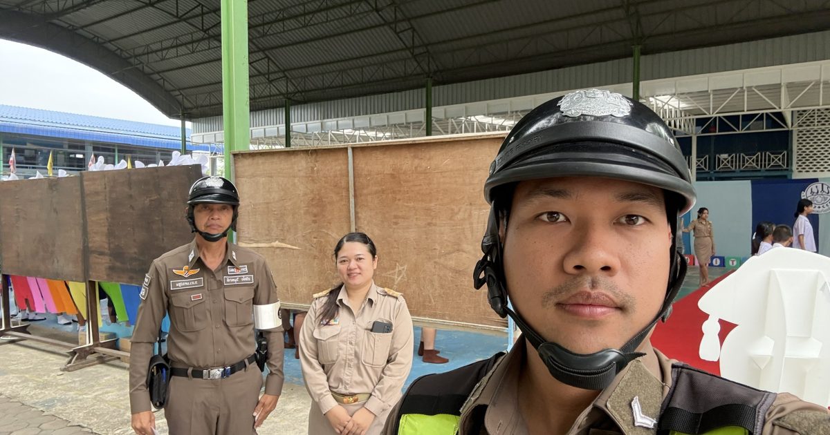 สายตรวจจราจร ปฎิบัติหน้าที่อำนวยความสะดวกการจราจร หน้าโรงเรียนบ้านหนองพงนก