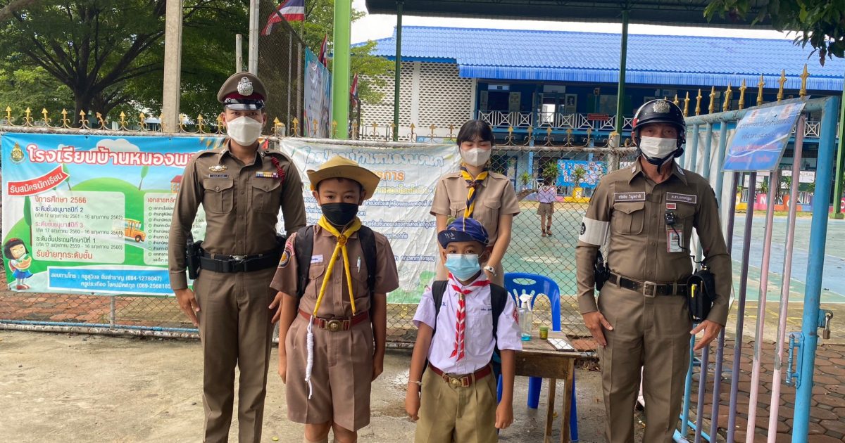 สายตรวจจราจร ปฎิบัติหน้าที่อำนวยความสะดวกการจราจร หน้าโรงเรียนบ้านหนองพงนก