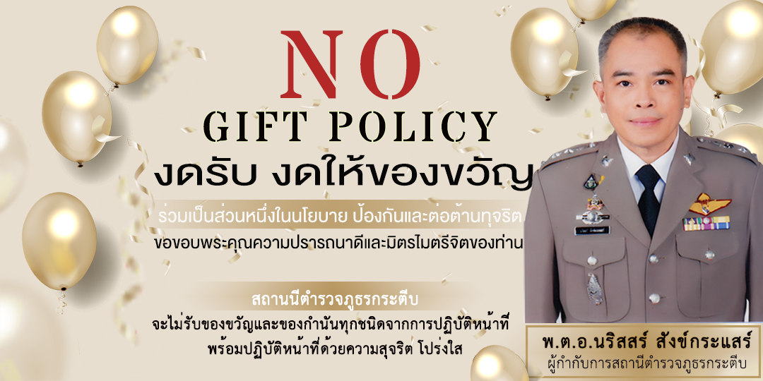 เจตนารมณ์ที่จะไม่รับของขวัญและของกำนัลทุกชนิด 31 January 2567 by adm_kratip adm_kratip / ไม่มี สถานีตำรวจภูธรกระตีบ จะไม่รับของขวัญและของกำนันทุกชนิด จากการปฏิบัติหน้าที่ พร้อมปฏิบัติหน้าที่ ด้วยความสุจริต โปร่งใส