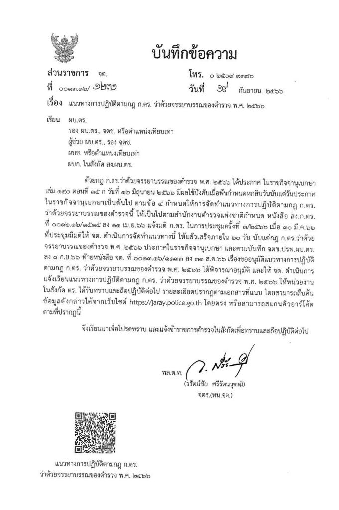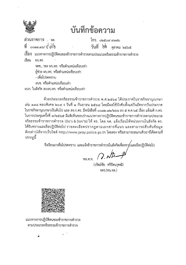 ดาวโหลดแนวทางปฏิบัติบันตนของราชการตำรวจ