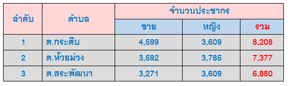 ตำบลกระตีบ       มี 8 หมู่บ้าน 2873 หลังคาเรือน พื้นที่ 39.00 ตร.กม.